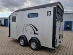 Le HBX 506, 2 places est idéal pour transporter deux chevaux. Il est équipé de série de deux vitres latérales, d’une grande fenêtre avant, de longerons latéraux, d’un portail et de barres de recul. Pour les propriétaires de fourgons recherchant une polyvalence accrue, le pont de portail standard est idéal. Fonctionnant comme un pont pour le chargement des chevaux, il peut également s’ouvrir comme une porte latérale, permettant ainsi à un chariot élévateur de chargeur d’objets lourds dans le fourgon.